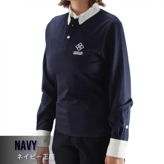 クラシックな配色デザインが魅力の長袖ポロシャツ。