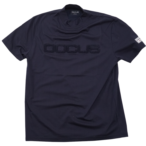 胸のモコモコロゴが特徴のモックネックシャツ。