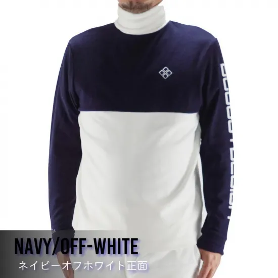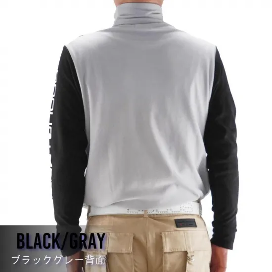 大胆なバイカラー切替が印象的な、秋冬向けのモックネックシャツ。