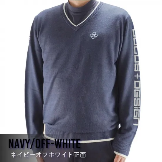 見た目はシンプルなVネックセーター、でも中身はひと味違う。