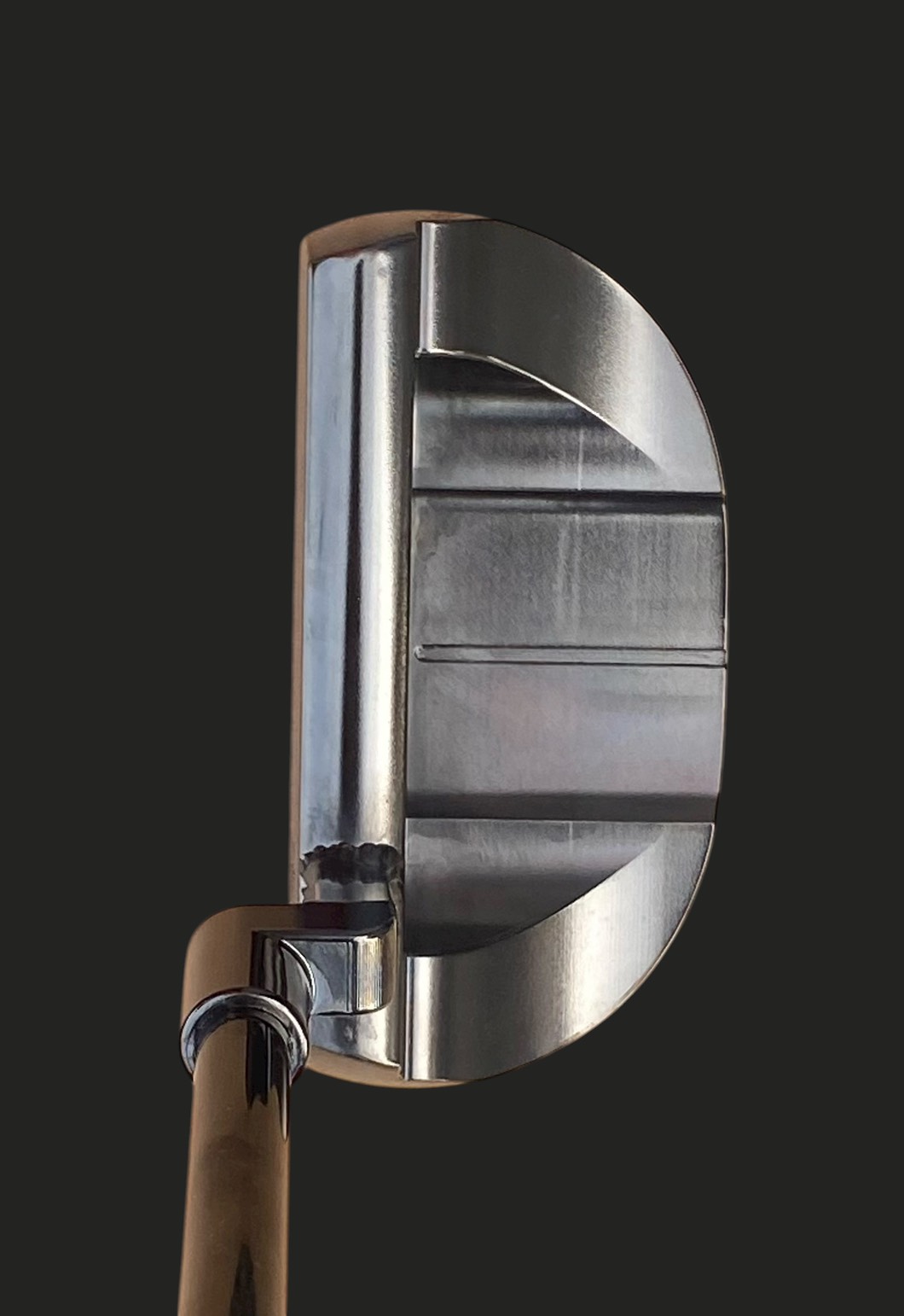 ピンタイプ2機種はタングステンプレートを装着する事によりヒール重心になり、ヒールを軸にパッティングすることによりストロークが安定する。